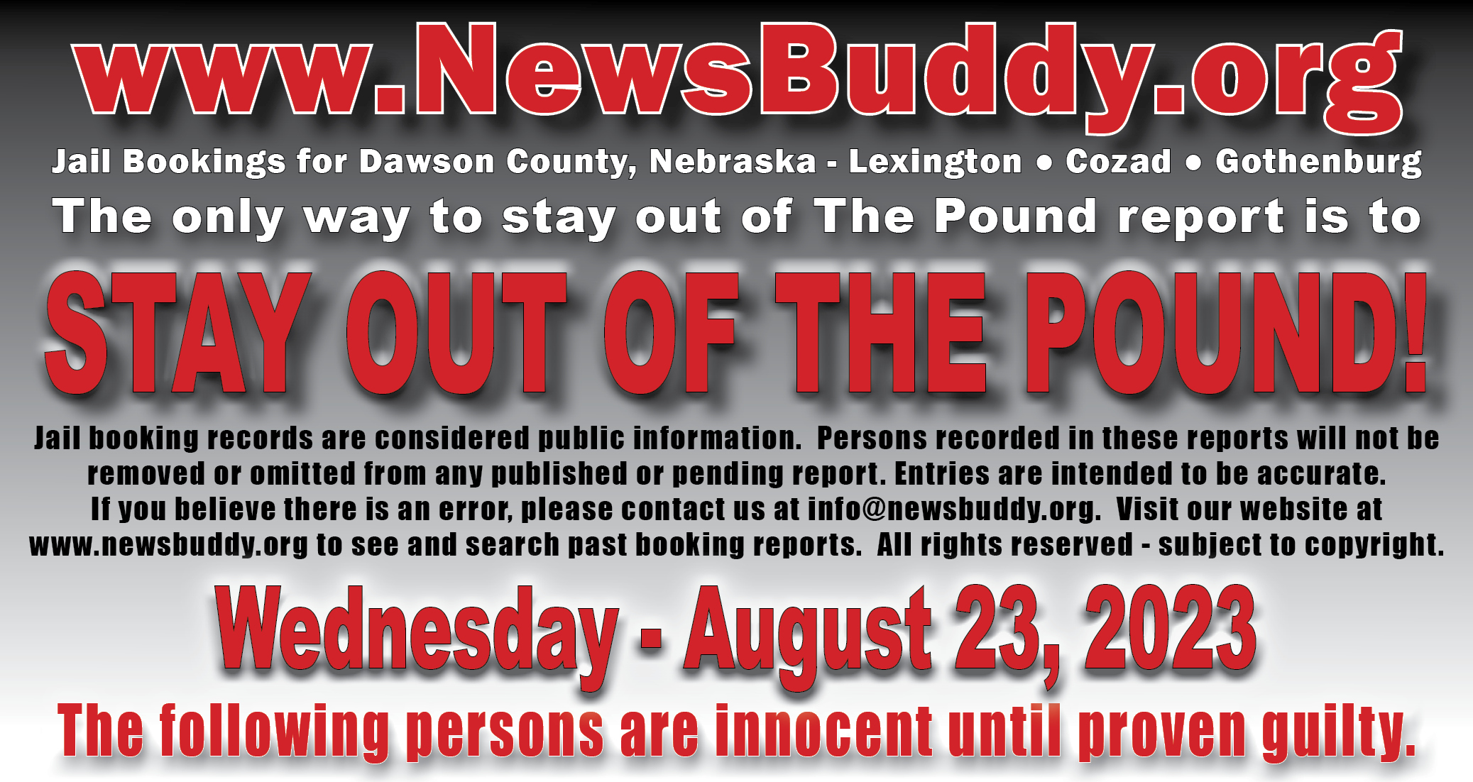 [et_pb_section fb_built=”1″ fullwidth=”on” _builder_version=”4.16″ _module_preset=”default” global_colors_info=”{}”][et_pb_fullwidth_header title=”Arrest and Booking Report” text_orientation=”center” button_one_text=”See our Facebook Page” button_one_url=”https://www.facebook.com/NEthepound” _builder_version=”4.16″ _module_preset=”default” title_font=”|700||||on|||” title_text_color=”#000000″ title_font_size=”29px” title_letter_spacing=”3px” content_font=”|||||on|||” content_text_color=”#d6d6d6″ content_font_size=”13px” content_line_height=”1.6em” use_background_color_gradient=”on” background_color_gradient_stops=”#ff3233 0%|#0a0000 100%” background_color_gradient_start=”#ff3233″ background_color_gradient_end=”#0a0000″ custom_button_one=”on” button_one_text_size=”11px” button_one_text_color=”#000000″ button_one_bg_use_color_gradient=”on” button_one_bg_color_gradient_type=”circular” button_one_bg_color_gradient_stops=”#d6d6d6 29%|#8f8f8f 100%” button_one_bg_color_gradient_start=”#d6d6d6″ button_one_bg_color_gradient_start_position=”29%” button_one_bg_color_gradient_end=”#8f8f8f” button_one_border_width=”0px” button_one_border_radius=”68px” button_one_font=”|800|||||||” link_option_url_new_window=”on” box_shadow_style_button_one=”preset1″ box_shadow_color_button_one=”#000000″ global_colors_info=”{}”]This statement does not indicate criminal record. Persons in this statement are presumed innocent until proven guilty in a court of law.[/et_pb_fullwidth_header][/et_pb_section][et_pb_section fb_built=”1″ _builder_version=”4.18.0″ _module_preset=”default” global_colors_info=”{}”][et_pb_row _builder_version=”4.17.6″ _module_preset=”default” global_colors_info=”{}”][et_pb_column type=”4_4″ _builder_version=”4.16″ _module_preset=”default” global_colors_info=”{}”][et_pb_team_member name=”Yaikel Lara-Diaz” position=”31 – Lexington, NE; 08/23/23 @ 00:19″ name_last_edited=”off|phone” _builder_version=”4.19.4″ _module_preset=”default” hover_enabled=”0″ global_colors_info=”{}” name__hover_enabled=”off|desktop” title_text=”Lara-Diaz, Yaikel” image_url=”https://newsbuddy.org/wp-content/uploads/2023/08/Lara-Diaz-Yaikel.jpeg” sticky_enabled=”0″]