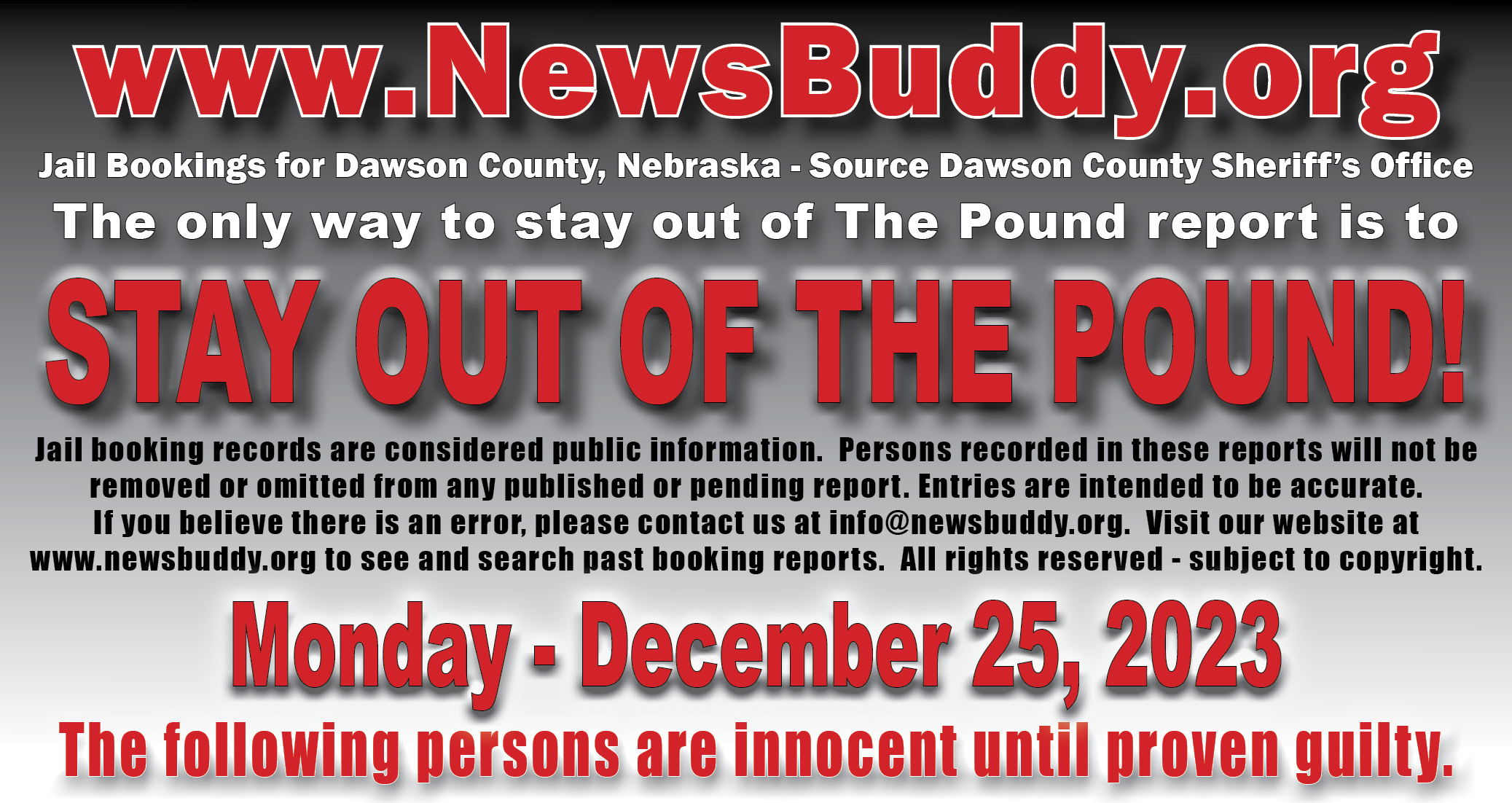 [et_pb_section fb_built=”1″ fullwidth=”on” _builder_version=”4.16″ _module_preset=”default” global_colors_info=”{}”][et_pb_fullwidth_header title=”Arrest and Booking Report” text_orientation=”center” button_one_text=”See our Facebook Page” button_one_url=”https://www.facebook.com/NEthepound” _builder_version=”4.16″ _module_preset=”default” title_font=”|700||||on|||” title_text_color=”#000000″ title_font_size=”29px” title_letter_spacing=”3px” content_font=”|||||on|||” content_text_color=”#d6d6d6″ content_font_size=”13px” content_line_height=”1.6em” use_background_color_gradient=”on” background_color_gradient_stops=”#ff3233 0%|#0a0000 100%” background_color_gradient_start=”#ff3233″ background_color_gradient_end=”#0a0000″ custom_button_one=”on” button_one_text_size=”11px” button_one_text_color=”#000000″ button_one_bg_use_color_gradient=”on” button_one_bg_color_gradient_type=”circular” button_one_bg_color_gradient_stops=”#d6d6d6 29%|#8f8f8f 100%” button_one_bg_color_gradient_start=”#d6d6d6″ button_one_bg_color_gradient_start_position=”29%” button_one_bg_color_gradient_end=”#8f8f8f” button_one_border_width=”0px” button_one_border_radius=”68px” button_one_font=”|800|||||||” link_option_url_new_window=”on” box_shadow_style_button_one=”preset1″ box_shadow_color_button_one=”#000000″ global_colors_info=”{}”]This statement does not indicate criminal record. Persons in this statement are presumed innocent until proven guilty in a court of law.[/et_pb_fullwidth_header][/et_pb_section][et_pb_section fb_built=”1″ _builder_version=”4.18.0″ _module_preset=”default” global_colors_info=”{}”][et_pb_row _builder_version=”4.17.6″ _module_preset=”default” global_colors_info=”{}”][et_pb_column type=”4_4″ _builder_version=”4.16″ _module_preset=”default” global_colors_info=”{}”][et_pb_team_member name=”Rojas, Brallan” position=”23 – Lexington, NE; 12/25/23 @ 10:00″ name_last_edited=”off|phone” _builder_version=”4.19.4″ _module_preset=”default” hover_enabled=”0″ global_colors_info=”{}” name__hover_enabled=”off|desktop” title_text=”Rojas, Brallan” image_url=”https://newsbuddy.org/wp-content/uploads/2023/12/Rojas-Brallan.jpeg” sticky_enabled=”0″]