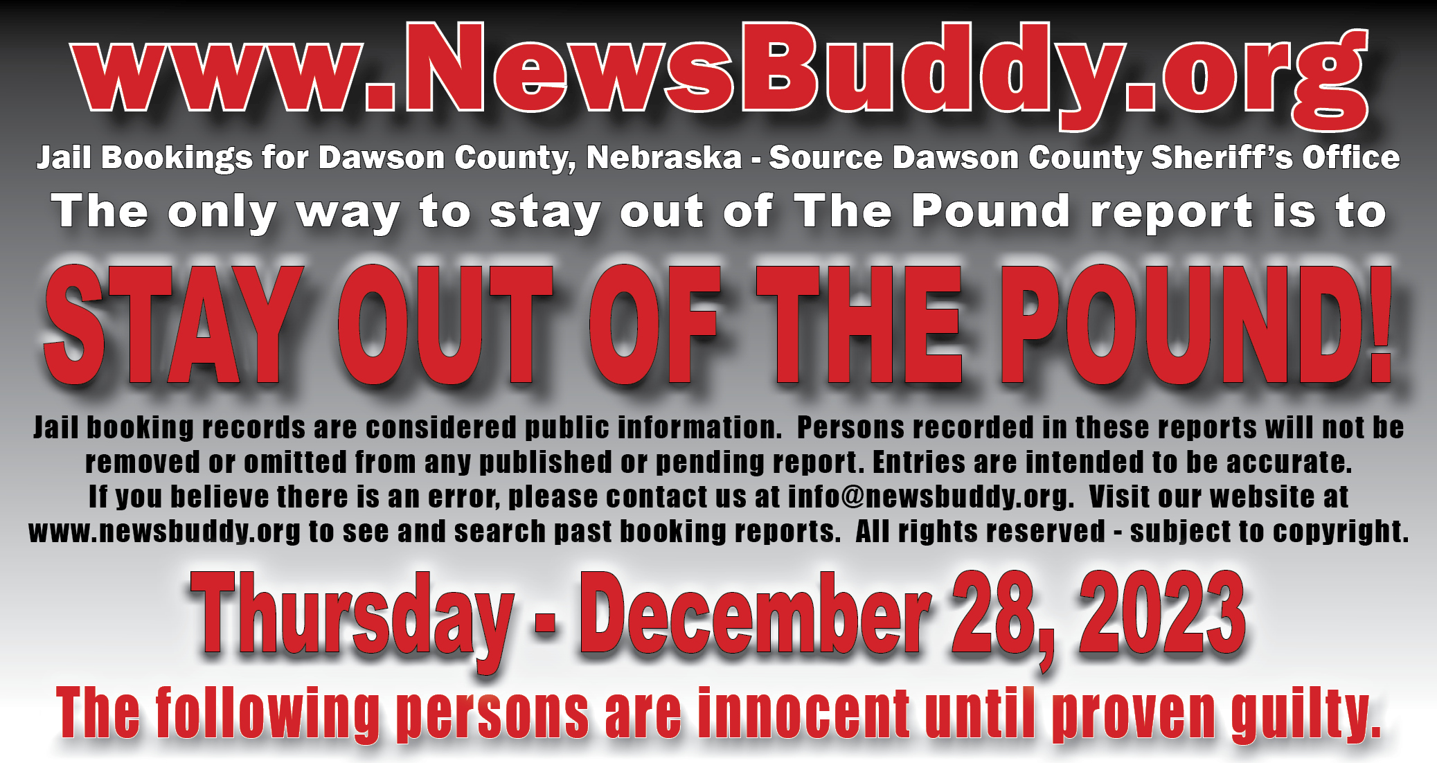 [et_pb_section fb_built=”1″ fullwidth=”on” _builder_version=”4.16″ _module_preset=”default” global_colors_info=”{}”][et_pb_fullwidth_header title=”Arrest and Booking Report” text_orientation=”center” button_one_text=”See our Facebook Page” button_one_url=”https://www.facebook.com/NEthepound” _builder_version=”4.16″ _module_preset=”default” title_font=”|700||||on|||” title_text_color=”#000000″ title_font_size=”29px” title_letter_spacing=”3px” content_font=”|||||on|||” content_text_color=”#d6d6d6″ content_font_size=”13px” content_line_height=”1.6em” use_background_color_gradient=”on” background_color_gradient_stops=”#ff3233 0%|#0a0000 100%” background_color_gradient_start=”#ff3233″ background_color_gradient_end=”#0a0000″ custom_button_one=”on” button_one_text_size=”11px” button_one_text_color=”#000000″ button_one_bg_use_color_gradient=”on” button_one_bg_color_gradient_type=”circular” button_one_bg_color_gradient_stops=”#d6d6d6 29%|#8f8f8f 100%” button_one_bg_color_gradient_start=”#d6d6d6″ button_one_bg_color_gradient_start_position=”29%” button_one_bg_color_gradient_end=”#8f8f8f” button_one_border_width=”0px” button_one_border_radius=”68px” button_one_font=”|800|||||||” link_option_url_new_window=”on” box_shadow_style_button_one=”preset1″ box_shadow_color_button_one=”#000000″ global_colors_info=”{}”]This statement does not indicate criminal record. Persons in this statement are presumed innocent until proven guilty in a court of law.[/et_pb_fullwidth_header][/et_pb_section][et_pb_section fb_built=”1″ _builder_version=”4.18.0″ _module_preset=”default” global_colors_info=”{}”][et_pb_row _builder_version=”4.17.6″ _module_preset=”default” global_colors_info=”{}”][et_pb_column type=”4_4″ _builder_version=”4.16″ _module_preset=”default” global_colors_info=”{}”][et_pb_team_member name=”Kelly, Sherry Jean” position=”63 – Sumner, NE; 12/28/23 @ 04:09″ name_last_edited=”off|phone” _builder_version=”4.19.4″ _module_preset=”default” hover_enabled=”0″ global_colors_info=”{}” name__hover_enabled=”off|desktop” title_text=”Kelly, Sherry Jean” image_url=”https://newsbuddy.org/wp-content/uploads/2023/12/Kelly-Sherry-Jean.jpg” sticky_enabled=”0″]