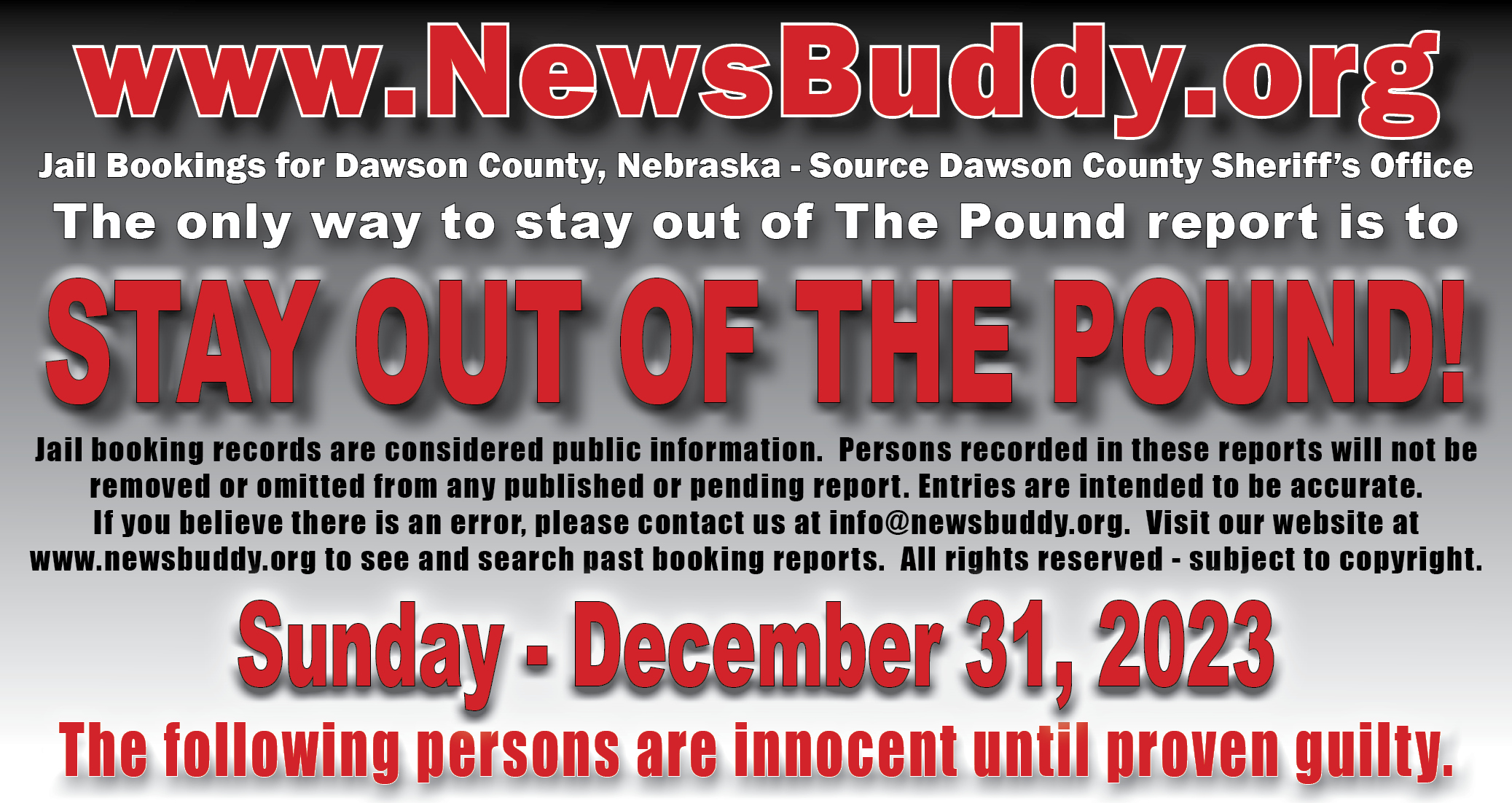[et_pb_section fb_built=”1″ fullwidth=”on” _builder_version=”4.16″ _module_preset=”default” global_colors_info=”{}”][et_pb_fullwidth_header title=”Arrest and Booking Report” text_orientation=”center” button_one_text=”See our Facebook Page” button_one_url=”https://www.facebook.com/NEthepound” _builder_version=”4.16″ _module_preset=”default” title_font=”|700||||on|||” title_text_color=”#000000″ title_font_size=”29px” title_letter_spacing=”3px” content_font=”|||||on|||” content_text_color=”#d6d6d6″ content_font_size=”13px” content_line_height=”1.6em” use_background_color_gradient=”on” background_color_gradient_stops=”#ff3233 0%|#0a0000 100%” background_color_gradient_start=”#ff3233″ background_color_gradient_end=”#0a0000″ custom_button_one=”on” button_one_text_size=”11px” button_one_text_color=”#000000″ button_one_bg_use_color_gradient=”on” button_one_bg_color_gradient_type=”circular” button_one_bg_color_gradient_stops=”#d6d6d6 29%|#8f8f8f 100%” button_one_bg_color_gradient_start=”#d6d6d6″ button_one_bg_color_gradient_start_position=”29%” button_one_bg_color_gradient_end=”#8f8f8f” button_one_border_width=”0px” button_one_border_radius=”68px” button_one_font=”|800|||||||” link_option_url_new_window=”on” box_shadow_style_button_one=”preset1″ box_shadow_color_button_one=”#000000″ global_colors_info=”{}”]This statement does not indicate criminal record. Persons in this statement are presumed innocent until proven guilty in a court of law.[/et_pb_fullwidth_header][/et_pb_section][et_pb_section fb_built=”1″ _builder_version=”4.18.0″ _module_preset=”default” global_colors_info=”{}”][et_pb_row _builder_version=”4.17.6″ _module_preset=”default” global_colors_info=”{}”][et_pb_column type=”4_4″ _builder_version=”4.16″ _module_preset=”default” global_colors_info=”{}”][et_pb_team_member name=”Hernandez, James D.” position=”19 – Lexington, NE; 12/31/23 @ 01:10″ name_last_edited=”off|phone” _builder_version=”4.19.4″ _module_preset=”default” hover_enabled=”0″ global_colors_info=”{}” name__hover_enabled=”off|desktop” title_text=”Hernandez, James D” image_url=”https://newsbuddy.org/wp-content/uploads/2024/01/Hernandez-James-D.jpg” sticky_enabled=”0″]
