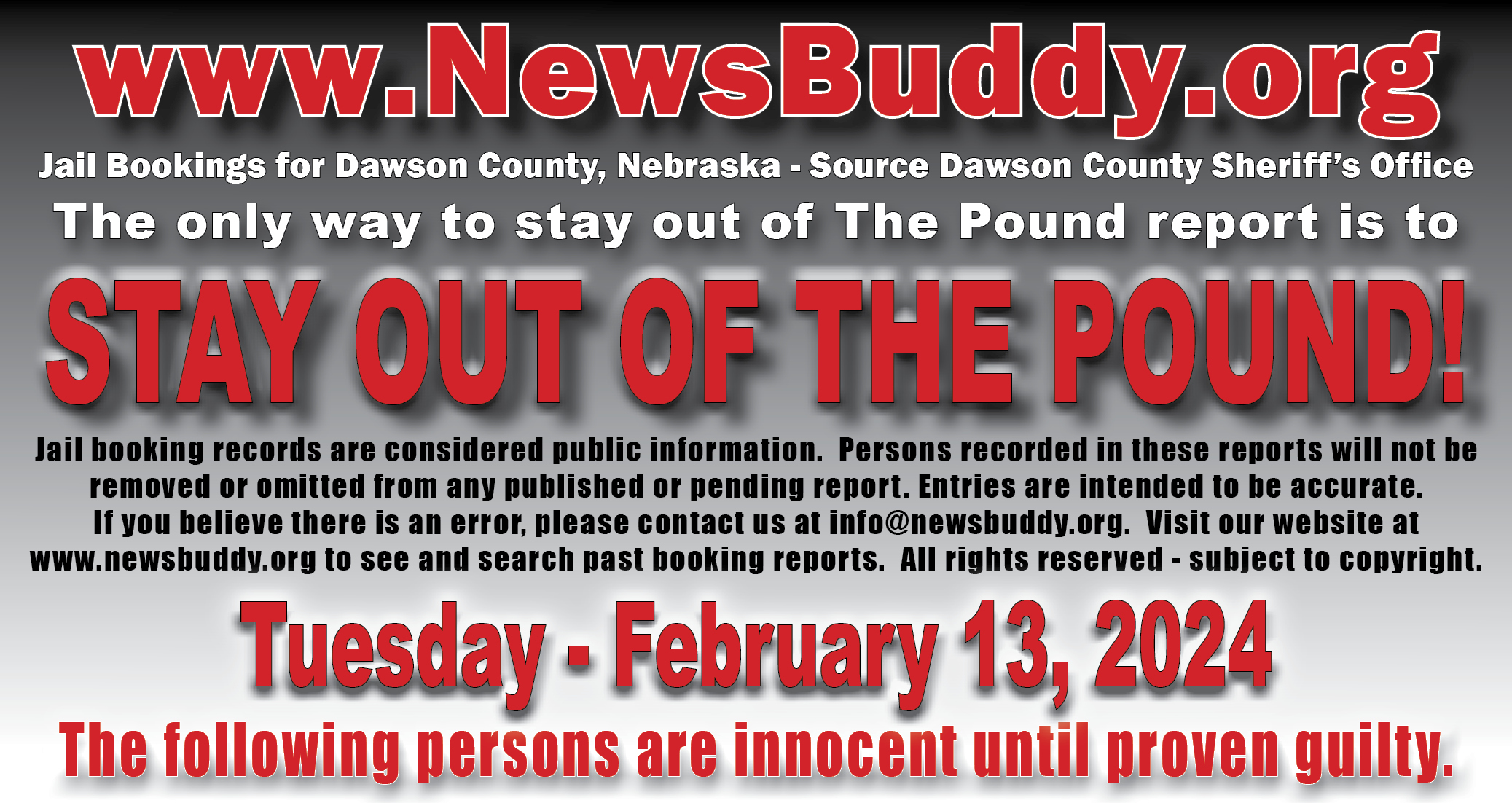 [et_pb_section fb_built=”1″ fullwidth=”on” _builder_version=”4.16″ _module_preset=”default” global_colors_info=”{}”][et_pb_fullwidth_header title=”Arrest and Booking Report” text_orientation=”center” button_one_text=”See our Facebook Page” button_one_url=”https://www.facebook.com/NEthepound” _builder_version=”4.16″ _module_preset=”default” title_font=”|700||||on|||” title_text_color=”#000000″ title_font_size=”29px” title_letter_spacing=”3px” content_font=”|||||on|||” content_text_color=”#d6d6d6″ content_font_size=”13px” content_line_height=”1.6em” use_background_color_gradient=”on” background_color_gradient_stops=”#ff3233 0%|#0a0000 100%” background_color_gradient_start=”#ff3233″ background_color_gradient_end=”#0a0000″ custom_button_one=”on” button_one_text_size=”11px” button_one_text_color=”#000000″ button_one_bg_use_color_gradient=”on” button_one_bg_color_gradient_type=”circular” button_one_bg_color_gradient_stops=”#d6d6d6 29%|#8f8f8f 100%” button_one_bg_color_gradient_start=”#d6d6d6″ button_one_bg_color_gradient_start_position=”29%” button_one_bg_color_gradient_end=”#8f8f8f” button_one_border_width=”0px” button_one_border_radius=”68px” button_one_font=”|800|||||||” link_option_url_new_window=”on” box_shadow_style_button_one=”preset1″ box_shadow_color_button_one=”#000000″ global_colors_info=”{}”]This statement does not indicate criminal record. Persons in this statement are presumed innocent until proven guilty in a court of law.[/et_pb_fullwidth_header][/et_pb_section][et_pb_section fb_built=”1″ _builder_version=”4.19.4″ _module_preset=”default” global_colors_info=”{}”][et_pb_row _builder_version=”4.17.6″ _module_preset=”default” global_colors_info=”{}”][et_pb_column type=”4_4″ _builder_version=”4.16″ _module_preset=”default” global_colors_info=”{}”][et_pb_team_member name=”Long Pumpkin, Duane Francis” position=”N/A – Kearney, NE; 2/13/24 @ 16:57″ name_last_edited=”off|phone” _builder_version=”4.19.4″ _module_preset=”default” hover_enabled=”0″ global_colors_info=”{}” name__hover_enabled=”off|desktop” title_text=”Long Pumpkin, Duane Francis” image_url=”https://newsbuddy.org/wp-content/uploads/2024/02/Long-Pumpkin-Duane-Francis-.jpeg” sticky_enabled=”0″]
