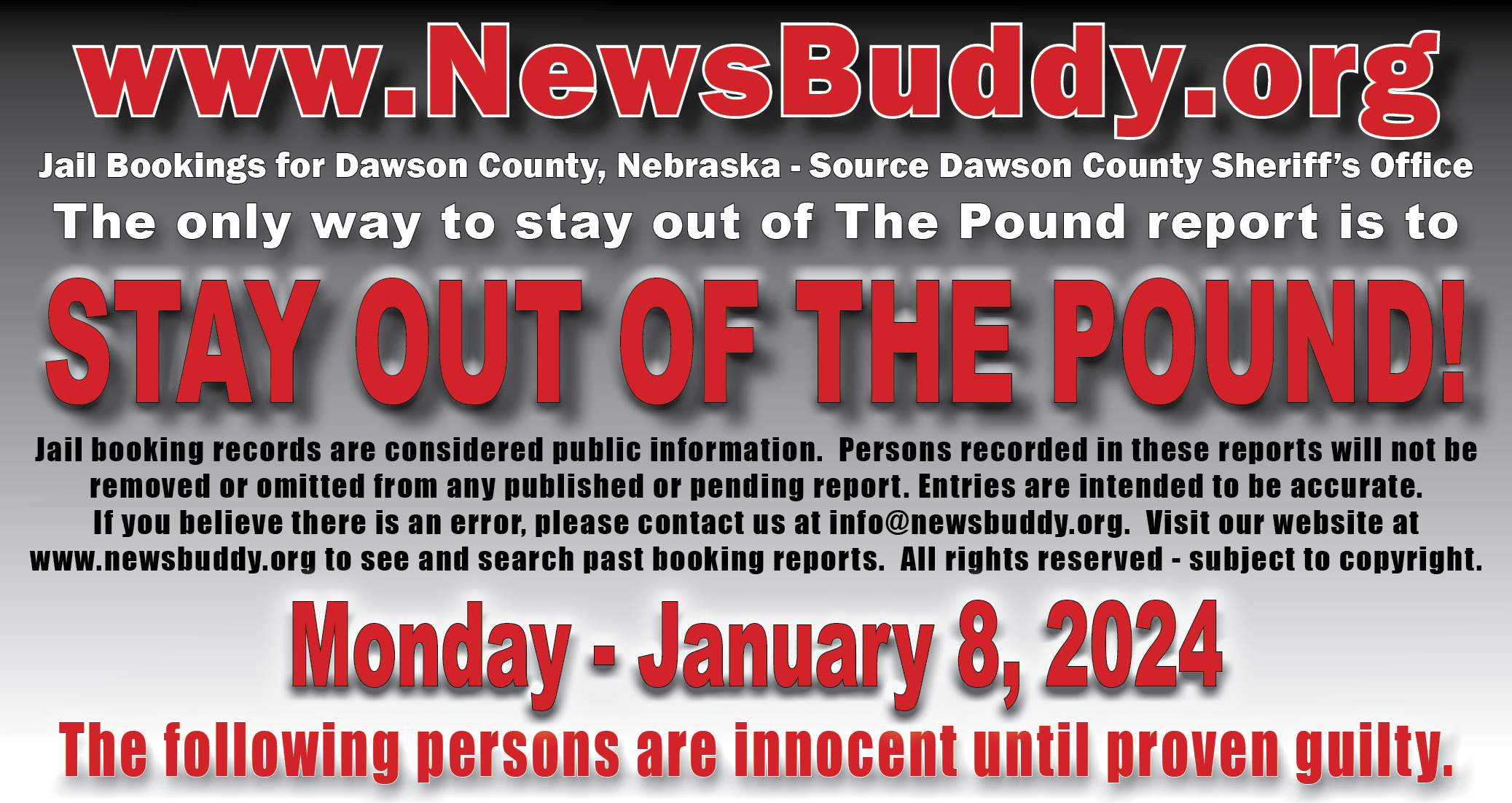 [et_pb_section fb_built=”1″ fullwidth=”on” _builder_version=”4.16″ _module_preset=”default” global_colors_info=”{}”][et_pb_fullwidth_header title=”Arrest and Booking Report” text_orientation=”center” button_one_text=”See our Facebook Page” button_one_url=”https://www.facebook.com/NEthepound” _builder_version=”4.16″ _module_preset=”default” title_font=”|700||||on|||” title_text_color=”#000000″ title_font_size=”29px” title_letter_spacing=”3px” content_font=”|||||on|||” content_text_color=”#d6d6d6″ content_font_size=”13px” content_line_height=”1.6em” use_background_color_gradient=”on” background_color_gradient_stops=”#ff3233 0%|#0a0000 100%” background_color_gradient_start=”#ff3233″ background_color_gradient_end=”#0a0000″ custom_button_one=”on” button_one_text_size=”11px” button_one_text_color=”#000000″ button_one_bg_use_color_gradient=”on” button_one_bg_color_gradient_type=”circular” button_one_bg_color_gradient_stops=”#d6d6d6 29%|#8f8f8f 100%” button_one_bg_color_gradient_start=”#d6d6d6″ button_one_bg_color_gradient_start_position=”29%” button_one_bg_color_gradient_end=”#8f8f8f” button_one_border_width=”0px” button_one_border_radius=”68px” button_one_font=”|800|||||||” link_option_url_new_window=”on” box_shadow_style_button_one=”preset1″ box_shadow_color_button_one=”#000000″ global_colors_info=”{}”]This statement does not indicate criminal record. Persons in this statement are presumed innocent until proven guilty in a court of law.[/et_pb_fullwidth_header][/et_pb_section][et_pb_section fb_built=”1″ _builder_version=”4.19.4″ _module_preset=”default” global_colors_info=”{}”][et_pb_row _builder_version=”4.17.6″ _module_preset=”default” global_colors_info=”{}”][et_pb_column type=”4_4″ _builder_version=”4.16″ _module_preset=”default” global_colors_info=”{}”][et_pb_team_member name=”No New Arrests!” name_last_edited=”off|phone” _builder_version=”4.19.4″ _module_preset=”default” hover_enabled=”0″ global_colors_info=”{}” name__hover_enabled=”off|desktop” title_text=”0021 – No new photos” image_url=”https://newsbuddy.org/wp-content/uploads/2024/01/0021-No-new-photos-1.jpg” sticky_enabled=”0″][/et_pb_team_member][et_pb_code _builder_version=”4.16″ _module_preset=”default” text_orientation=”center” custom_padding=”||0px|||” global_colors_info=”{}”]