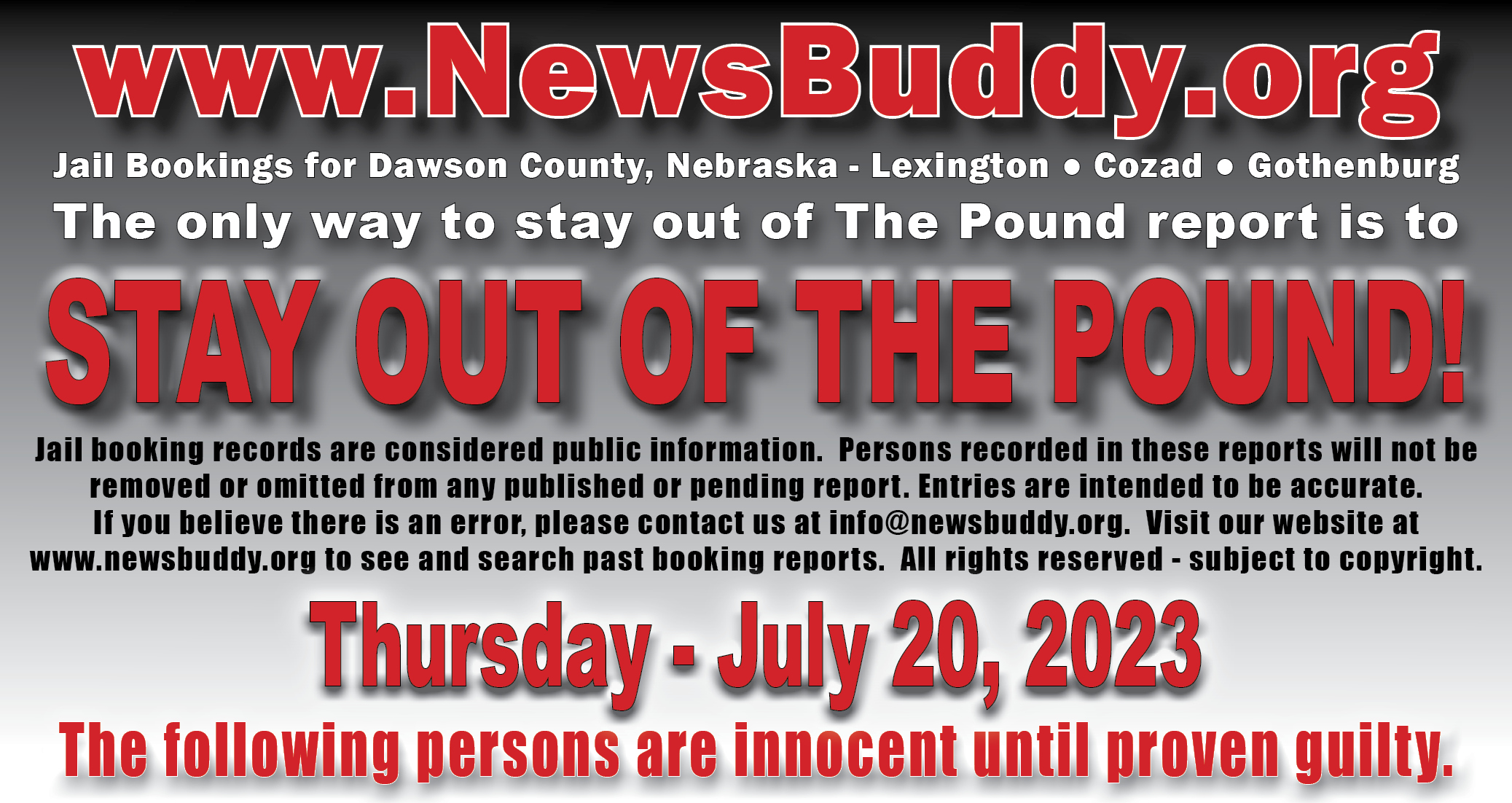 [et_pb_section fb_built=”1″ fullwidth=”on” _builder_version=”4.16″ _module_preset=”default” global_colors_info=”{}”][et_pb_fullwidth_header title=”Arrest and Booking Report” text_orientation=”center” button_one_text=”See our Facebook Page” button_one_url=”https://www.facebook.com/NEthepound” _builder_version=”4.16″ _module_preset=”default” title_font=”|700||||on|||” title_text_color=”#000000″ title_font_size=”29px” title_letter_spacing=”3px” content_font=”|||||on|||” content_text_color=”#d6d6d6″ content_font_size=”13px” content_line_height=”1.6em” use_background_color_gradient=”on” background_color_gradient_stops=”#ff3233 0%|#0a0000 100%” background_color_gradient_start=”#ff3233″ background_color_gradient_end=”#0a0000″ custom_button_one=”on” button_one_text_size=”11px” button_one_text_color=”#000000″ button_one_bg_use_color_gradient=”on” button_one_bg_color_gradient_type=”circular” button_one_bg_color_gradient_stops=”#d6d6d6 29%|#8f8f8f 100%” button_one_bg_color_gradient_start=”#d6d6d6″ button_one_bg_color_gradient_start_position=”29%” button_one_bg_color_gradient_end=”#8f8f8f” button_one_border_width=”0px” button_one_border_radius=”68px” button_one_font=”|800|||||||” link_option_url_new_window=”on” box_shadow_style_button_one=”preset1″ box_shadow_color_button_one=”#000000″ global_colors_info=”{}”]This statement does not indicate criminal record. Persons in this statement are presumed innocent until proven guilty in a court of law.[/et_pb_fullwidth_header][/et_pb_section][et_pb_section fb_built=”1″ _builder_version=”4.18.0″ _module_preset=”default” global_colors_info=”{}”][et_pb_row _builder_version=”4.17.6″ _module_preset=”default” global_colors_info=”{}”][et_pb_column type=”4_4″ _builder_version=”4.16″ _module_preset=”default” global_colors_info=”{}”][et_pb_team_member name=”Scarlett Rose Caporale” position=”18 – Cozad, NE; 7/20/23 @ 03:34″ image_url=”https://newsbuddy.org/wp-content/uploads/2023/07/Caporale-Scarlett-Rose.jpeg” name_last_edited=”off|phone” _builder_version=”4.19.4″ _module_preset=”default” global_colors_info=”{}” name__hover_enabled=”off|desktop”]