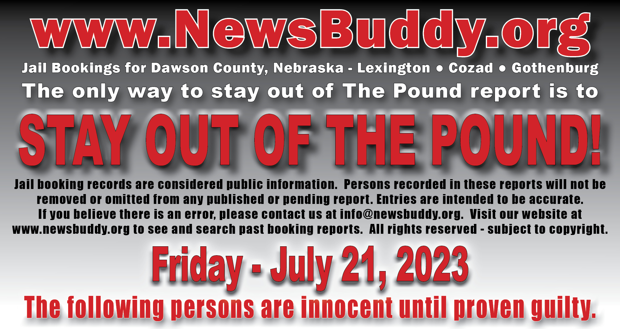 [et_pb_section fb_built=”1″ fullwidth=”on” _builder_version=”4.16″ _module_preset=”default” global_colors_info=”{}”][et_pb_fullwidth_header title=”Arrest and Booking Report” text_orientation=”center” button_one_text=”See our Facebook Page” button_one_url=”https://www.facebook.com/NEthepound” _builder_version=”4.16″ _module_preset=”default” title_font=”|700||||on|||” title_text_color=”#000000″ title_font_size=”29px” title_letter_spacing=”3px” content_font=”|||||on|||” content_text_color=”#d6d6d6″ content_font_size=”13px” content_line_height=”1.6em” use_background_color_gradient=”on” background_color_gradient_stops=”#ff3233 0%|#0a0000 100%” background_color_gradient_start=”#ff3233″ background_color_gradient_end=”#0a0000″ custom_button_one=”on” button_one_text_size=”11px” button_one_text_color=”#000000″ button_one_bg_use_color_gradient=”on” button_one_bg_color_gradient_type=”circular” button_one_bg_color_gradient_stops=”#d6d6d6 29%|#8f8f8f 100%” button_one_bg_color_gradient_start=”#d6d6d6″ button_one_bg_color_gradient_start_position=”29%” button_one_bg_color_gradient_end=”#8f8f8f” button_one_border_width=”0px” button_one_border_radius=”68px” button_one_font=”|800|||||||” link_option_url_new_window=”on” box_shadow_style_button_one=”preset1″ box_shadow_color_button_one=”#000000″ global_colors_info=”{}”]This statement does not indicate criminal record. Persons in this statement are presumed innocent until proven guilty in a court of law.[/et_pb_fullwidth_header][/et_pb_section][et_pb_section fb_built=”1″ _builder_version=”4.18.0″ _module_preset=”default” global_colors_info=”{}”][et_pb_row _builder_version=”4.17.6″ _module_preset=”default” global_colors_info=”{}”][et_pb_column type=”4_4″ _builder_version=”4.16″ _module_preset=”default” global_colors_info=”{}”][et_pb_team_member name=”Tyler Charles Farmer” position=”29 – Elm Creek, NE; 7/21/23 @ 07:05″ name_last_edited=”off|phone” _builder_version=”4.19.4″ _module_preset=”default” hover_enabled=”0″ global_colors_info=”{}” name__hover_enabled=”off|desktop” title_text=”Farmer, Tyler Charles” image_url=”https://newsbuddy.org/wp-content/uploads/2023/07/Farmer-Tyler-Charles.jpeg” sticky_enabled=”0″]