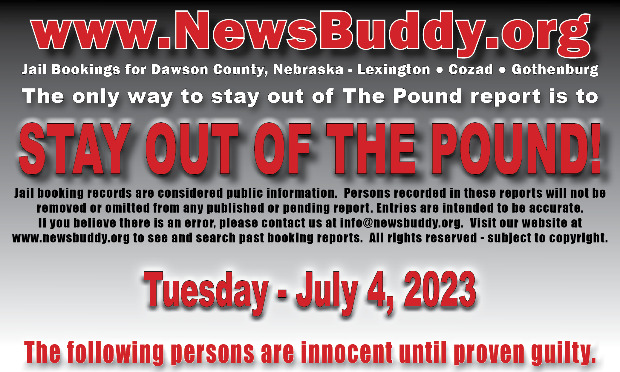 [et_pb_section fb_built=”1″ fullwidth=”on” _builder_version=”4.16″ _module_preset=”default” global_colors_info=”{}”][et_pb_fullwidth_header title=”Arrest and Booking Report” text_orientation=”center” button_one_text=”See our Facebook Page” button_one_url=”https://www.facebook.com/NEthepound” _builder_version=”4.16″ _module_preset=”default” title_font=”|700||||on|||” title_text_color=”#000000″ title_font_size=”29px” title_letter_spacing=”3px” content_font=”|||||on|||” content_text_color=”#d6d6d6″ content_font_size=”13px” content_line_height=”1.6em” use_background_color_gradient=”on” background_color_gradient_stops=”#ff3233 0%|#0a0000 100%” background_color_gradient_start=”#ff3233″ background_color_gradient_end=”#0a0000″ custom_button_one=”on” button_one_text_size=”11px” button_one_text_color=”#000000″ button_one_bg_use_color_gradient=”on” button_one_bg_color_gradient_type=”circular” button_one_bg_color_gradient_stops=”#d6d6d6 29%|#8f8f8f 100%” button_one_bg_color_gradient_start=”#d6d6d6″ button_one_bg_color_gradient_start_position=”29%” button_one_bg_color_gradient_end=”#8f8f8f” button_one_border_width=”0px” button_one_border_radius=”68px” button_one_font=”|800|||||||” link_option_url_new_window=”on” box_shadow_style_button_one=”preset1″ box_shadow_color_button_one=”#000000″ global_colors_info=”{}”]This statement does not indicate criminal record. Persons in this statement are presumed innocent until proven guilty in a court of law.[/et_pb_fullwidth_header][/et_pb_section][et_pb_section fb_built=”1″ _builder_version=”4.18.0″ _module_preset=”default” global_colors_info=”{}”][et_pb_row _builder_version=”4.17.6″ _module_preset=”default” global_colors_info=”{}”][et_pb_column type=”4_4″ _builder_version=”4.16″ _module_preset=”default” global_colors_info=”{}”][et_pb_team_member name=”Carrie R. Grenier” position=”30 – Gothenburg, NE: 7/4/2023 @ 09:59″ name_last_edited=”off|phone” _builder_version=”4.19.4″ _module_preset=”default” hover_enabled=”0″ global_colors_info=”{}” name__hover_enabled=”off|desktop” title_text=”Grenier, Carrie R” image_url=”https://newsbuddy.org/wp-content/uploads/2023/07/Grenier-Carrie-R.jpeg” sticky_enabled=”0″]