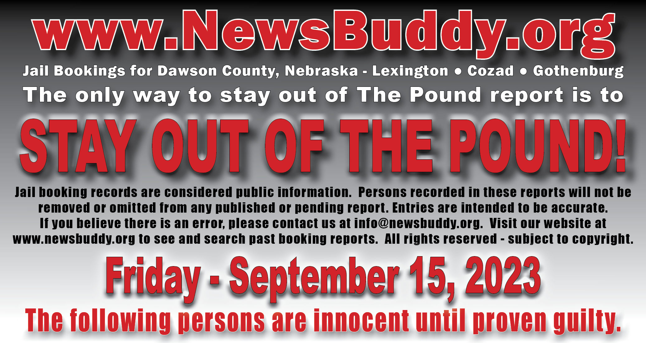 [et_pb_section fb_built=”1″ fullwidth=”on” _builder_version=”4.16″ _module_preset=”default” global_colors_info=”{}”][et_pb_fullwidth_header title=”Arrest and Booking Report” text_orientation=”center” button_one_text=”See our Facebook Page” button_one_url=”https://www.facebook.com/NEthepound” _builder_version=”4.16″ _module_preset=”default” title_font=”|700||||on|||” title_text_color=”#000000″ title_font_size=”29px” title_letter_spacing=”3px” content_font=”|||||on|||” content_text_color=”#d6d6d6″ content_font_size=”13px” content_line_height=”1.6em” use_background_color_gradient=”on” background_color_gradient_stops=”#ff3233 0%|#0a0000 100%” background_color_gradient_start=”#ff3233″ background_color_gradient_end=”#0a0000″ custom_button_one=”on” button_one_text_size=”11px” button_one_text_color=”#000000″ button_one_bg_use_color_gradient=”on” button_one_bg_color_gradient_type=”circular” button_one_bg_color_gradient_stops=”#d6d6d6 29%|#8f8f8f 100%” button_one_bg_color_gradient_start=”#d6d6d6″ button_one_bg_color_gradient_start_position=”29%” button_one_bg_color_gradient_end=”#8f8f8f” button_one_border_width=”0px” button_one_border_radius=”68px” button_one_font=”|800|||||||” link_option_url_new_window=”on” box_shadow_style_button_one=”preset1″ box_shadow_color_button_one=”#000000″ global_colors_info=”{}”]This statement does not indicate criminal record. Persons in this statement are presumed innocent until proven guilty in a court of law.[/et_pb_fullwidth_header][/et_pb_section][et_pb_section fb_built=”1″ _builder_version=”4.18.0″ _module_preset=”default” global_colors_info=”{}”][et_pb_row _builder_version=”4.17.6″ _module_preset=”default” global_colors_info=”{}”][et_pb_column type=”4_4″ _builder_version=”4.16″ _module_preset=”default” global_colors_info=”{}”][et_pb_team_member name=”Lara Ryan” position=”30 – Lexington, NE; 09/15/23 @ 11:30″ name_last_edited=”off|phone” _builder_version=”4.19.4″ _module_preset=”default” hover_enabled=”0″ global_colors_info=”{}” name__hover_enabled=”off|desktop” title_text=”Ryan, Lara” image_url=”https://newsbuddy.org/wp-content/uploads/2023/09/Ryan-Lara.jpeg” sticky_enabled=”0″]